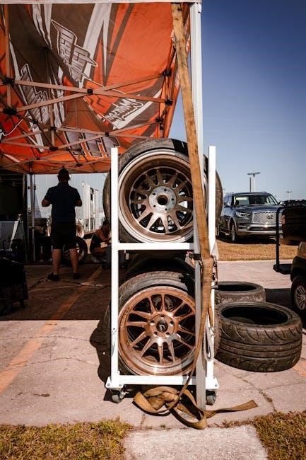 Completing the kit requires a torque wrench for precise lug nut tightening‚ tire lube for easier mounting‚ and wheel protectors to prevent rim damage. A portable air compressor is useful for re-inflation‚ and a work light enhances visibility.
